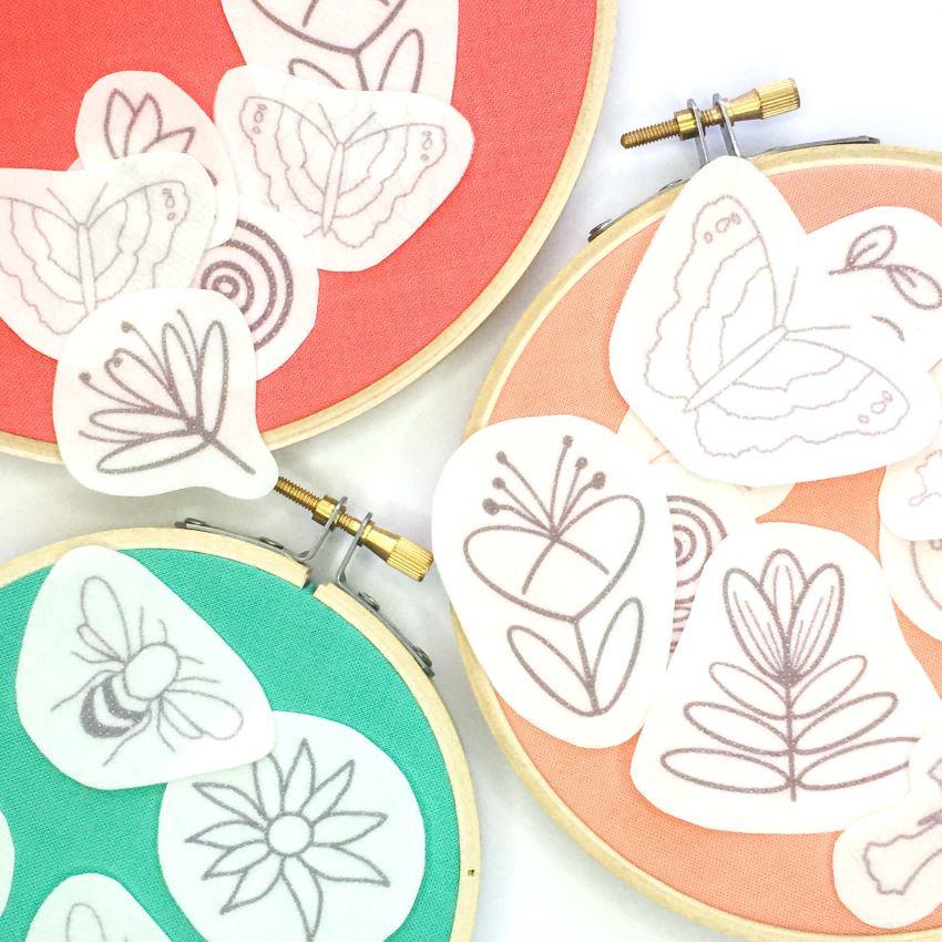 Water-soluble stick and stitch embroidery stickers are easy to use.